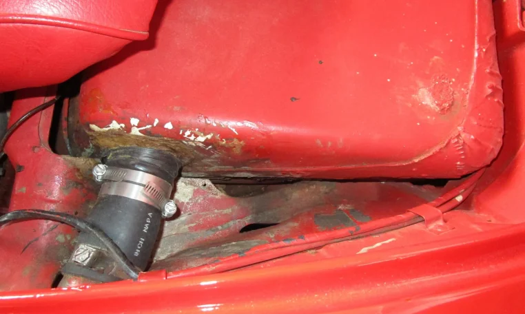 Previous repairs to the left front fender and roof opening areas,carpet is faded.