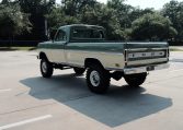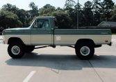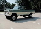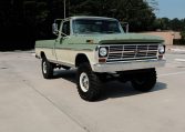 No Taxes & LicensingThis 1969 Ford F-250 Ranger is a 4×4 pickup that is powered by a 360ci V8 linked with a four-speed manual transmission, a divorced dual-range transfer case, and a limited-slip Dana 60 rear differential. Finished in two-tone green, the truck is further equipped with 16″ steel wheels, Mile Marker manually locking front hubs, and Bilstein shock absorbers in addition to black interior upholstery, a heater, long-tube exhaust headers, and a MagnaFlow muffler