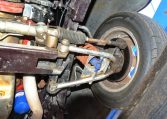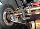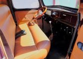 Polished 15″ Weld Racing Rodlite wheels are wrapped in 195/65 front and 255/70 rear BFGoodrich tires. A Heidts Mustang II-style independent front suspension system and steering rack are installed, and braking is handled by power-assisted front discs and rear drums.