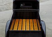 Power is sent to the rear wheels through a GM TH350 three-speed automatic transmission and a B&M torque converter linked to a narrowed Ford9″ rear end with a 3.50:1 limited-slip differential. Other updates include a 15-gallon polyethylene fuel tank and a Holley fuel pump.
